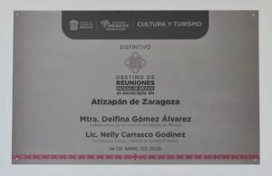 Atizapán de Zaragoza, el alcalde Pedro Rodríguez y la secretaria de Cultura y Turismo del Estado de México, Nelly Carrasco Godínez, develaron la placa conmemorativa que distingue a Atizapán de Zaragoza como “Destino de Reuniones Estado de México”, consolidando a este municipio como un territorio idóneo para la realización de reuniones empresariales de carácter nacional.